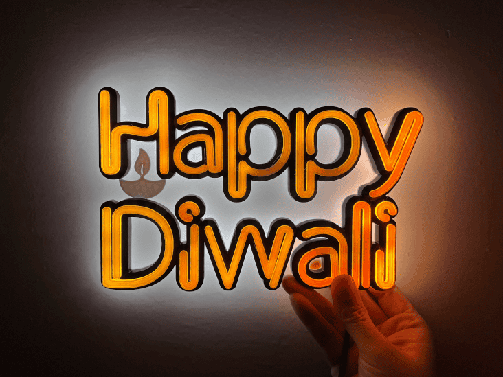 3D printed Happy Diwali Neon style Back Lit LED